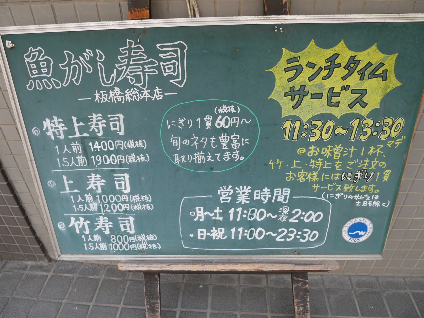 今回は、板橋駅から徒歩1分ほどのところにある「魚がし寿司」にやってきました!