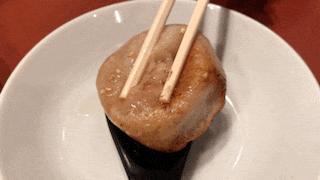 カリカリの皮と、ジューシーなタネがたまらん!!なにも付けなくてもお肉の旨味が溢れ出てくるよ!!