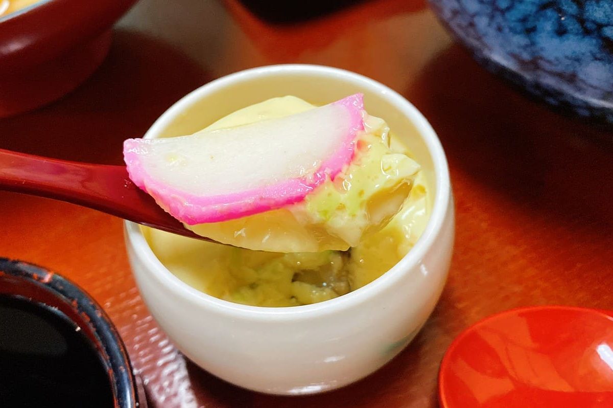 銀杏やしいたけ、海老やかまぼこなど定番の具材が入っている茶碗蒸し♪